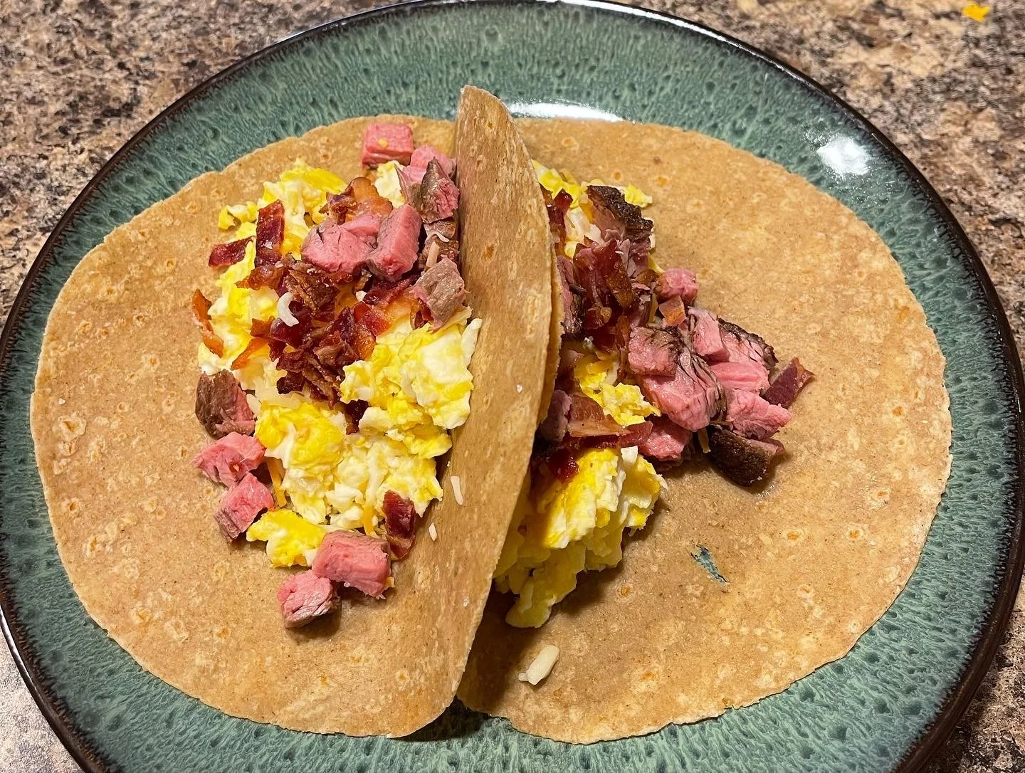 This is the perfect breakfast to have on the menu! Who doesn’t love Steak, Eggs, Bacon and a little cheese to start the day? If you get two of these at your favorite bakery or restaurant you’re easily dropping $10-15 and the I guarantee the quality will be less as well. Fueling up the body to succeed!
